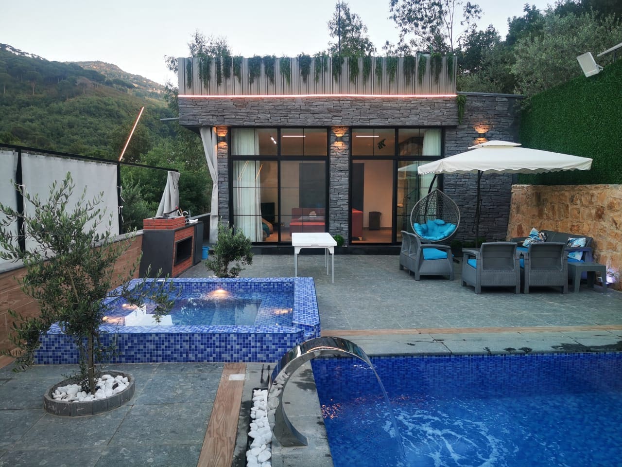 El Sol Chalet is a peaceful escape in Baisour, Aley, featuring 3 bedrooms (1 king, 2 singles), 1 bathroom, and 5 beds, ideal for up to 10 guests. The space offers a refreshing private pool, an outdoor jacuzzi, a BBQ area, Wi-Fi, and air conditioning for maximum comfort.Prices for June – $250 weekdays / $300 weekends, July & August – $300 weekdays / $350 weekends.Extra charges apply for additional guests.