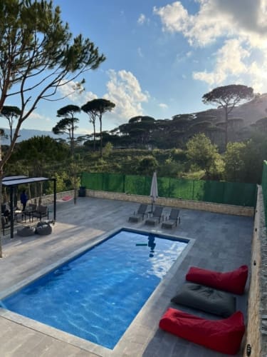 Olivana is a cozy retreat nestled in the serene area of Btebyet, just a short drive from Hammana. This private chalet features two guest bedrooms, one bathroom, and three beds, comfortably accommodating between 6 to 8 guests. Ideal for families or small groups, it includes a private pool, barbecue area, fireplace, and two air conditioners to ensure comfort throughout your stay. Wi-Fi is available for added convenience. The daily rate is $210 on weekdays and $260 on weekends, while the weekly rate is $1500. Check-in is at 5 PM and check-out is at 3 PM.