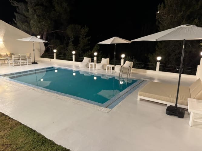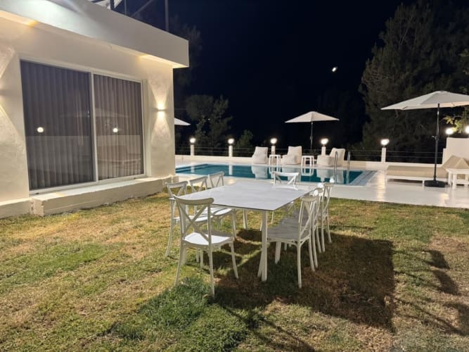 Tucked along the scenic main road of Kherbet Bissri, this charming guesthouse offers a peaceful escape for small groups and families. The chalet features two cozy bedrooms (one double bed and two singles), a warm living room with panoramic forest views, a fully equipped kitchen, air conditioning, and Wi-Fi. The highlight of this guesthouse is its private garden and pool, providing a serene setting for daytime lounging or nighttime dips. A BBQ station, outdoor tent, and private parking space make this unit ideal for weekend getaways or celebrations.