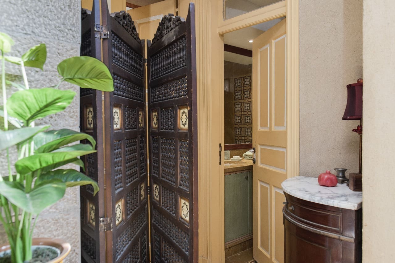 This simple yet functional room offers comfort and privacy with a nearby private outdoor toilet, suited for guests who prefer a quieter, budget-friendly option.