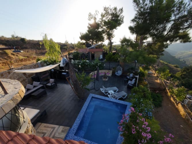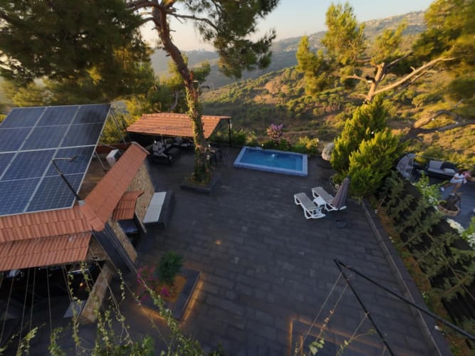Tucked away in the serene landscapes of Kfarmatta in Mount Lebanon, LV Blossom is a private mountain retreat that blends relaxation with charm. This versatile chalet offers two distinct units: a cozy guesthouse ideal for 2 to 4 guests, and a spacious group chalet that accommodates up to 8 people with three bedrooms and three bathrooms.