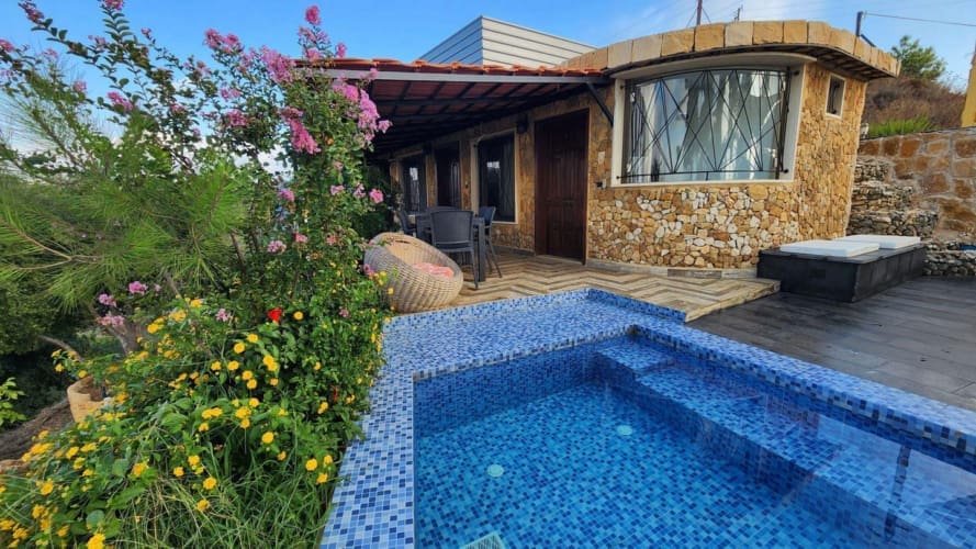 Whether you’re enjoying a romantic escape or hosting a group getaway, each unit is designed for comfort, featuring queen-size beds, inviting living areas, and access to a private jacuzzi-style mini pool. The property includes a built-in BBQ area, a fully equipped kitchen, a fireplace for chilly evenings, and air conditioning for warm summer days. Surrounded by pine-covered hills and fresh mountain air, LV Blossom offers a peaceful, rejuvenating experience.