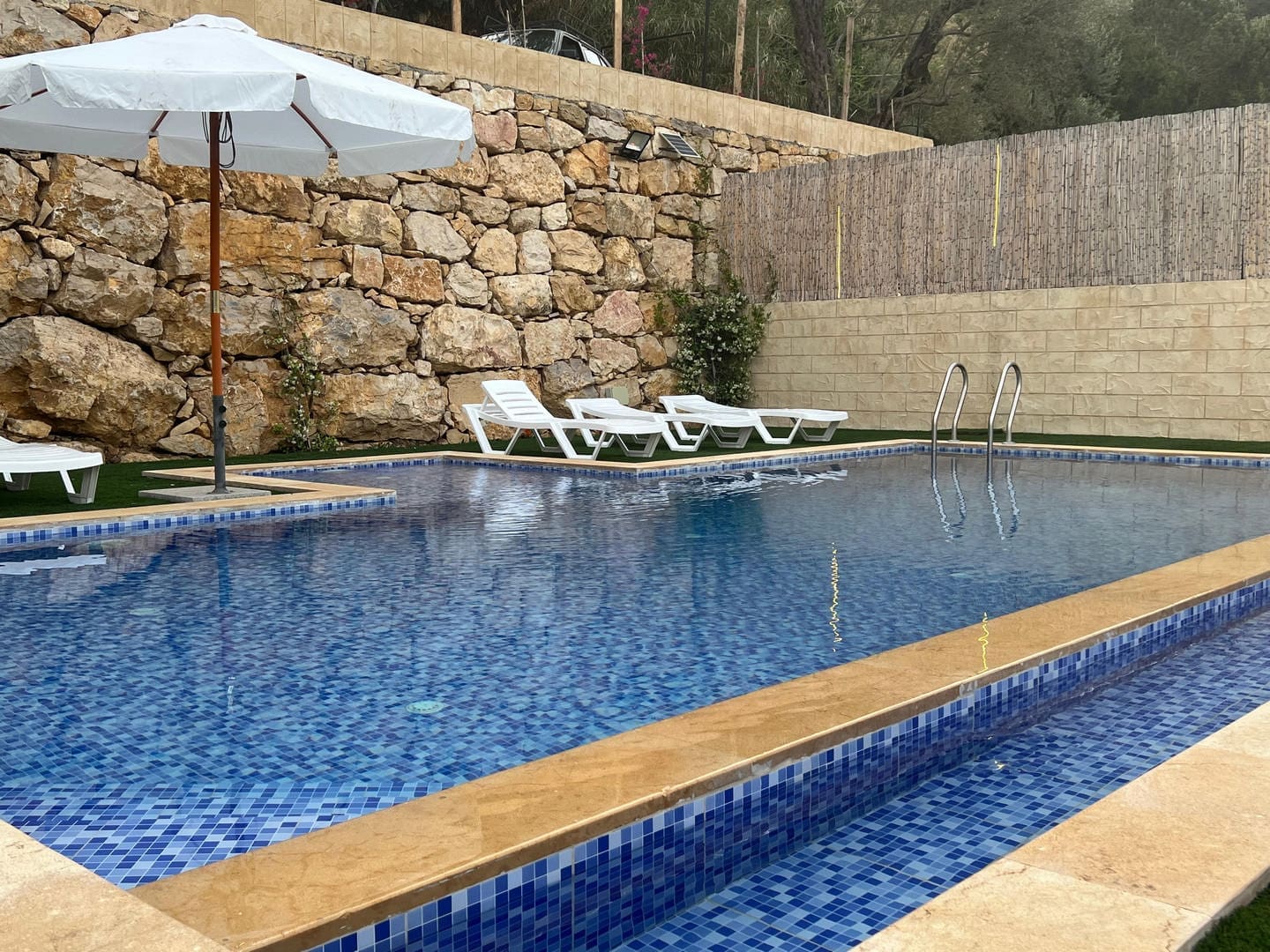 The bungalow features a spacious bedroom with two king-size beds, a fully equipped kitchen with glassware, a sleek bathroom with hot water, and a welcoming living room with sofa beds for extra guests. Step outside onto the terrace and you’ll find the highlight of your stay—a serene private pool with panoramic mountain views, perfect for quiet swims, sun-soaked lounging, or unforgettable golden-hour moments.